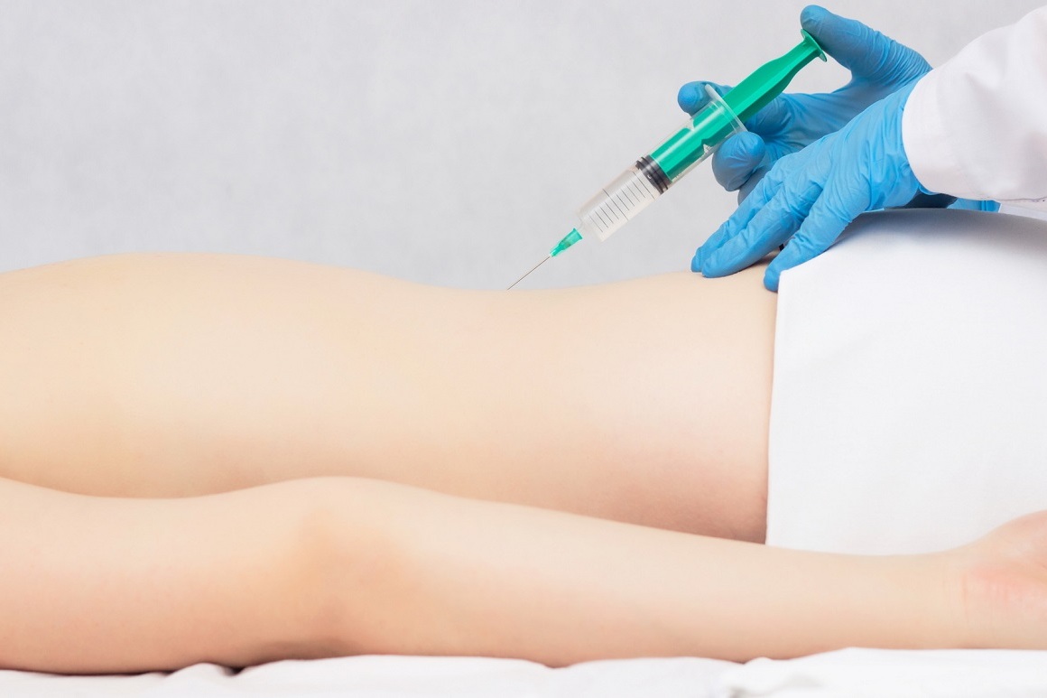 Specialista ošetří ruce, najde a určí oblast největší bolesti a ošetří pokožku dolní části zad v místě vpichu antiseptikem.